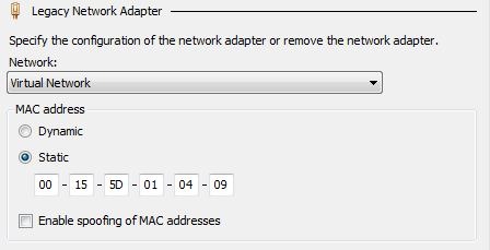 Through the Hyper-V Configuration panel (blue window), I did the following: