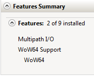 After I finished the setup on the second server I connected back to the first server with Server Manager and verified that Multipath was installed while I waited for the second machine to restart.
