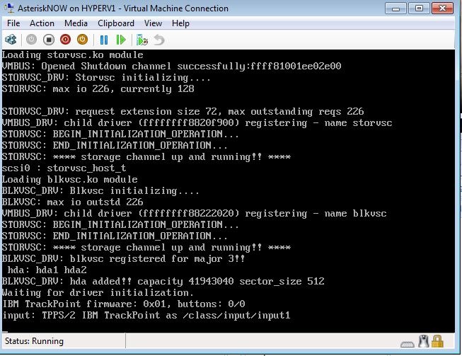 AsteriskNOW runs on CentOS and has no problem running on Hyper-V clusters but I warn you – you must set the MAC address to be static on a Virtual Network Adapter in order to have the IP come up on the other Hyper-V hosts in the cluster. (Incidently I have used VMs to run asterisk in my home office for almost a year now without any issues).
