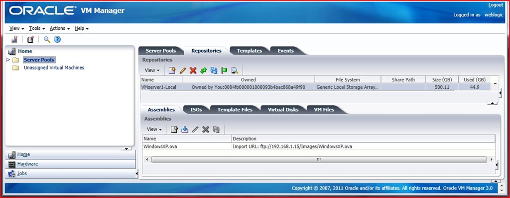 I wanted to setup a production environment in my lab to test out Oracles VM Server framework so I set aside a few hours to take ‘a look inside’. After downloading the small ISO to setup a server (it only runs on 64-bit hardware) I set out to download and setup the manager component. Unfortunately it wasn’t as easy as running a windows client like the Citrix and VMware product but I was intrigued and decided to persevere.
