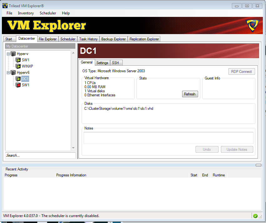 You can only perform a full backup on any of these vms but since this is a free product and you can do it while the guest is running I think this software is a great plus you can check them out at http://www.trilead.com/Editions. Where else can you find a software that will allow you to backup a vm – convert it and then import it to a hyper-v cluster that is free?