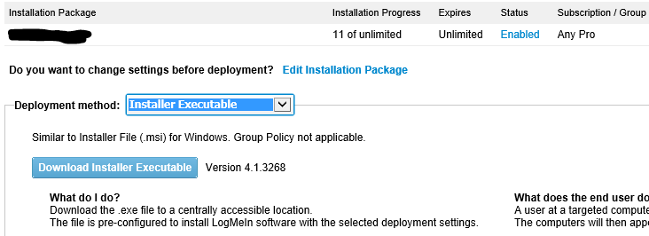 First you have to create a customized package using your LogMeIn account and download the executable version (this process is outside the scope of this document).